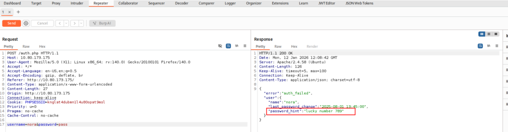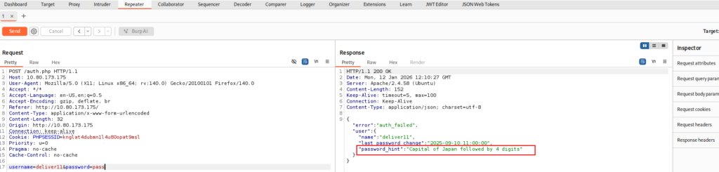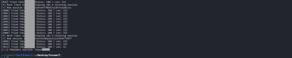 print(f"[+] New session cookie: {cookie}") I was not blocked by the firewall when using this script, and after a short while I had the correct password for user deliver11: