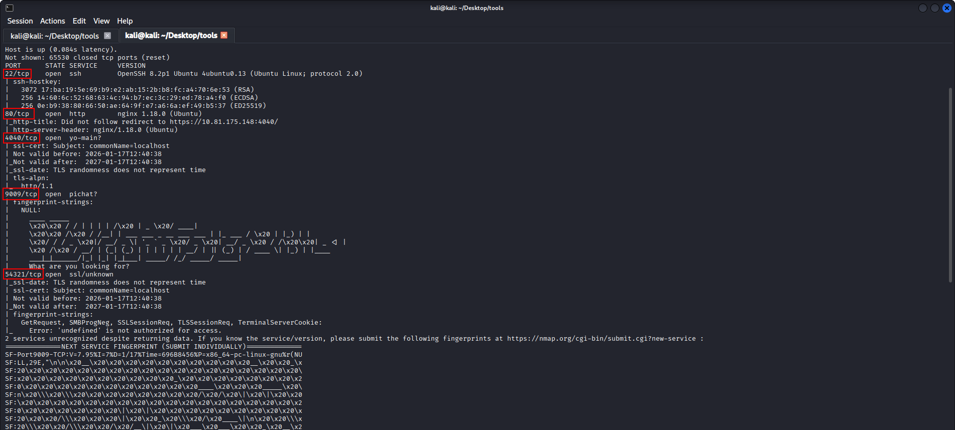 Based on the nmap results, this clearly refers to the service running on port 9009.