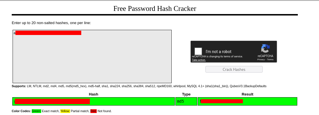 I cracked the MD5 hash using online tool crackstation.net, recovered the plaintext password, switched to root, and obtained the final flag.