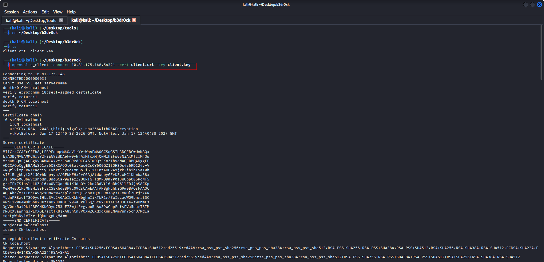 openssl s_client -connect 10.81.175.148:54321 -cert client.crt -key client.key