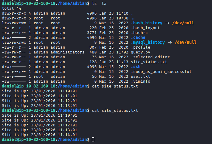 I started a reverse shell, and after a while, I got a reverse shell as adrian