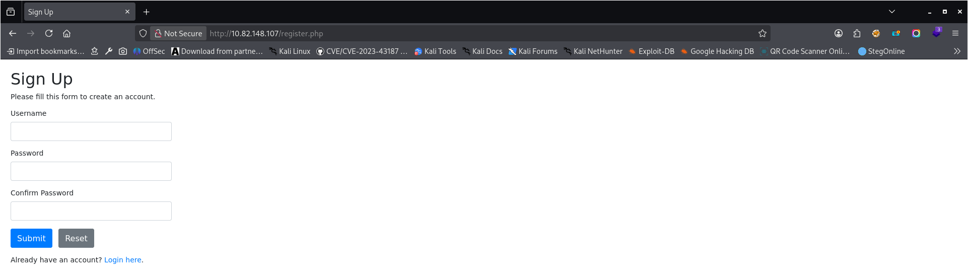nmap -p- -sT -Pn -T5 --max-retries 2 10.82.148.107 Scan reveals open port 80 and 22