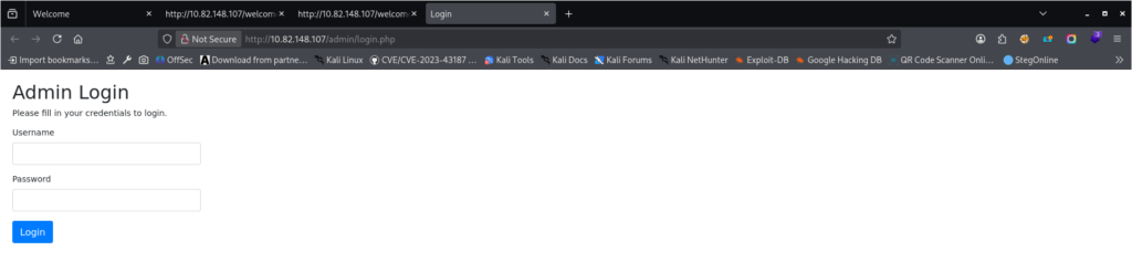 During directory enumeration using DirBuster with the wordlist/usr/share/wordlists/dirbuster/directory-list-2.3-medium.txt, an admin login panel was discovered.