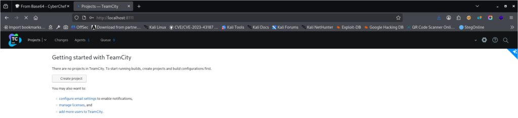 ssh -i id_rsa -L 8111:127.0.0.1:8111 sys-internal@10.80.134.129 As we have access to application we can create project and as one of the build steps we can use command: