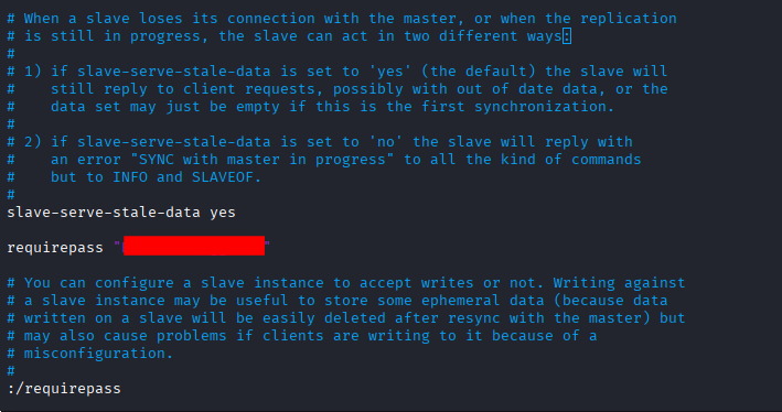 After mounting the directory /opt/conf to our filesystem, we can see a redis folder. In the redis directory, there is a file redis.conf where we can find the password to redis. (*useful resource about pentesting redis)